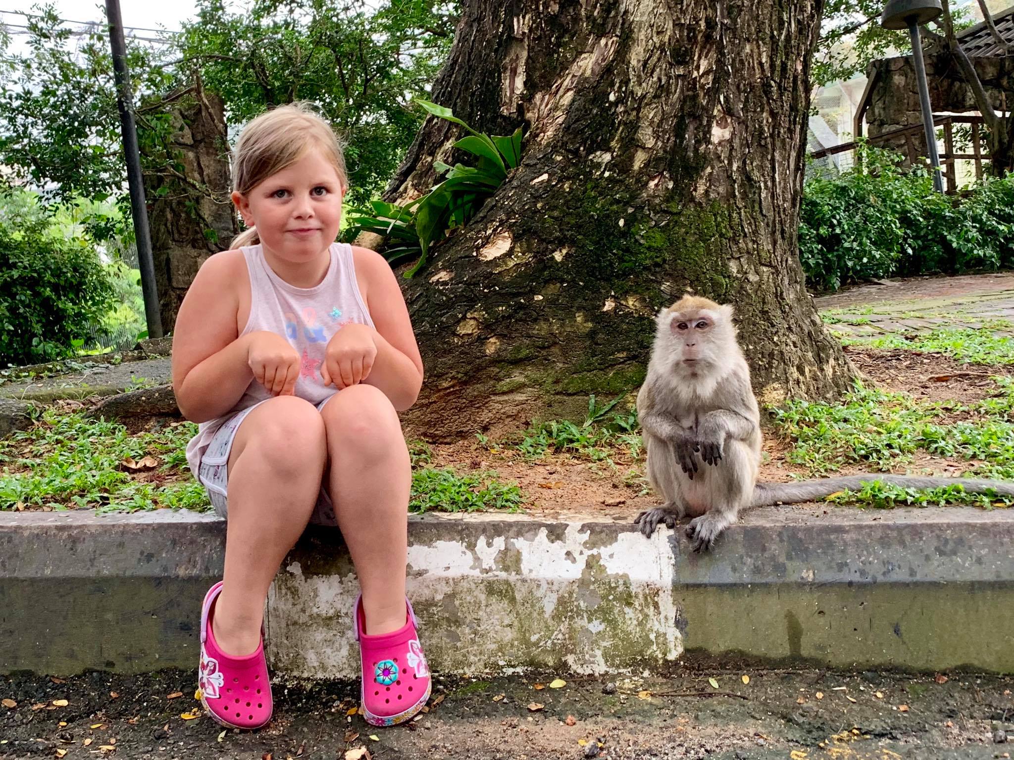A trópusi éghajlaton az is szuper dolog, hogy számtalan állattal kerülünk testközelbe. Az a gyerek, aki látja hogy az őt külvevő természethez szorosan hozzátartoznak az állatok de nincs tőlük félnivalója, akinek a szobájában gekkók mászkálnak a falon, a terasza alatti üregben egy hatalmas varánusz lakik, a vacsora asztalon imádkozó sáska sétál, a játszótér kerítésén majmok csücsülnek, és a reggelijéből meg tudja kínálni az elefántokat, az igazi bizalommal fog közelíteni az állatok felé, sosem fog félni tőlük vagy bántani őket.