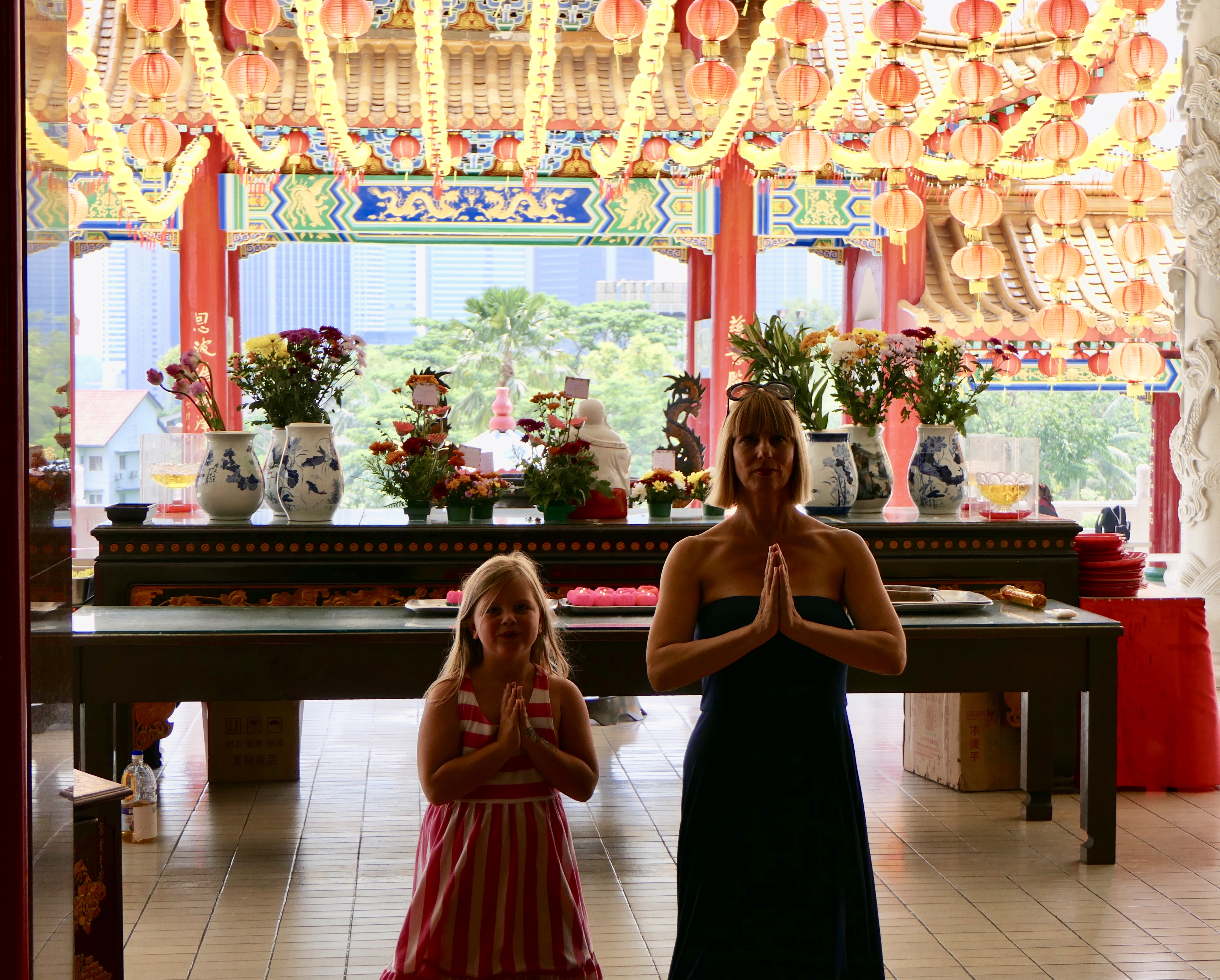 Utazások alkalmával,ha van rá lehetőség,meglátogatjuk a helyi iskolát,ami akár a lemodernebb technológiával felszerelt szingapúri csodasuli 4D-s nyomtatóval és versenymedencével,akár egy thaiföldi falusi bambuszkonyhó,kapírgáló tyúkokkal az udvaron,szemmel láthatóan nagy hatással van a gyerekek világára. Amikor tudunk,bekukucskálunk a helyi otthonokba,megfigyeljük és alkalom adtán ki is próbáljuk a tradícionális kézműves technikákat,végig járjuk a templomokat és megismerkedünk az ott élők vallásával,családias vendéglőkben megkóstoljuk a hagyományos ételeket,a piacon feltérképezzük az ott termő gyümölcsöket és zöldségeket és igyekszünk személyes kapcsolatot teremteni a helyi emberekkel,hogy a gyerekek minél korábban megértsék,mennyire nem számít,hogy valakinek milyen színű a bőre,milyen a ruhája és milyen istenhez imádkozik!