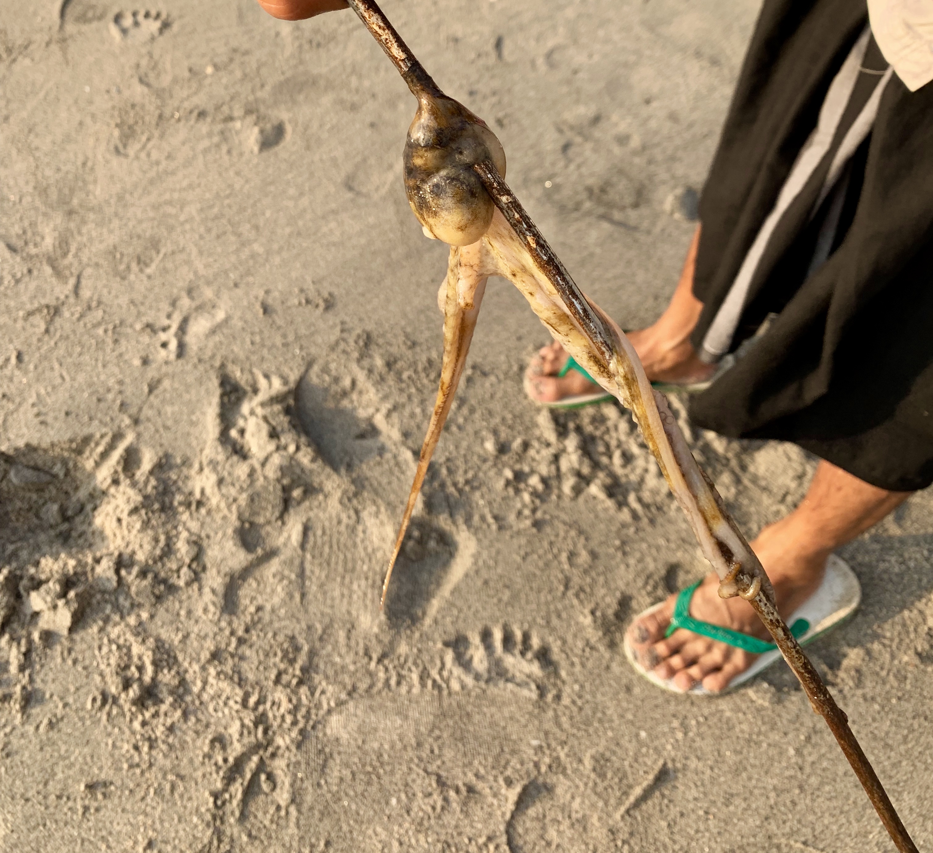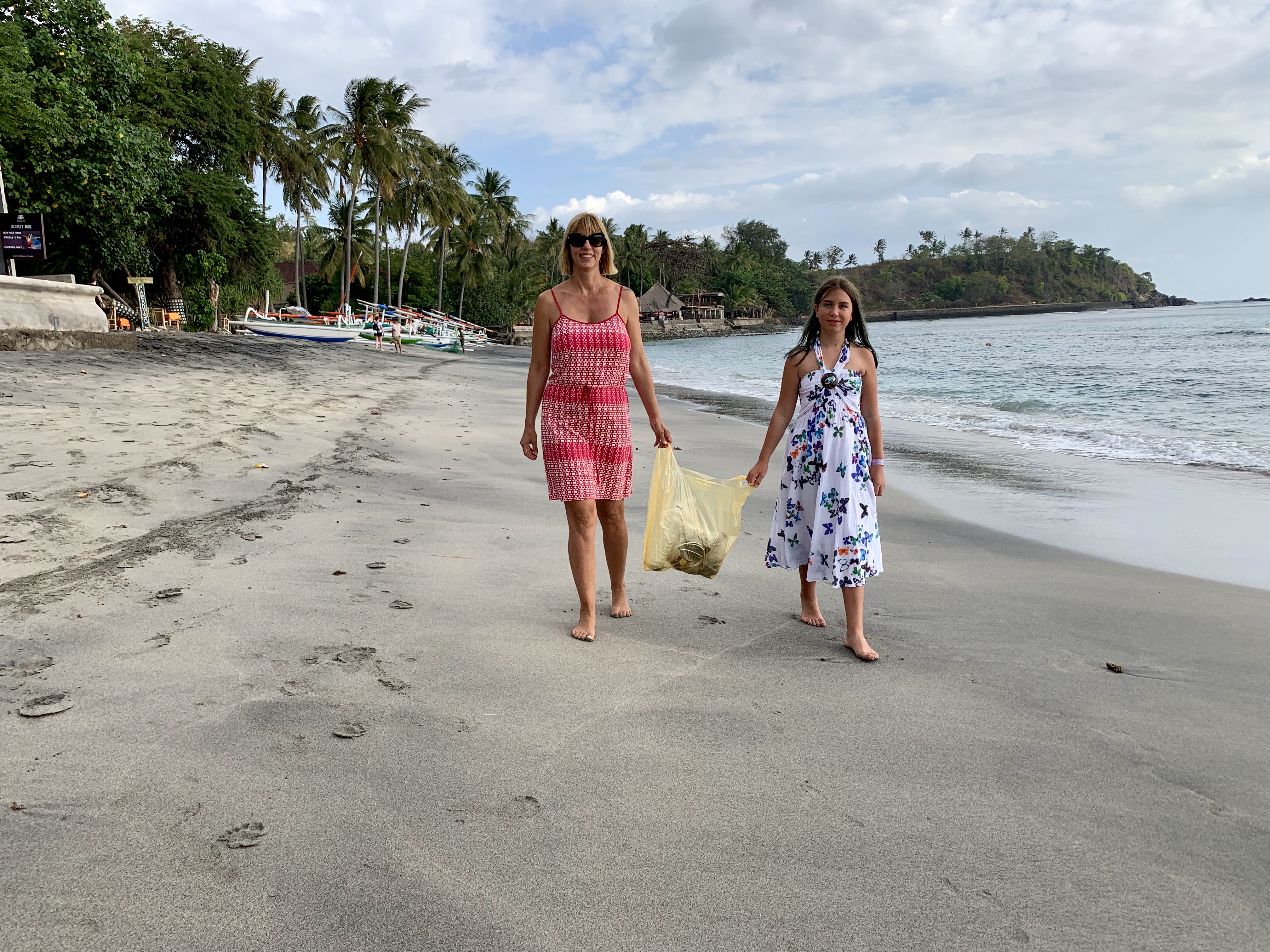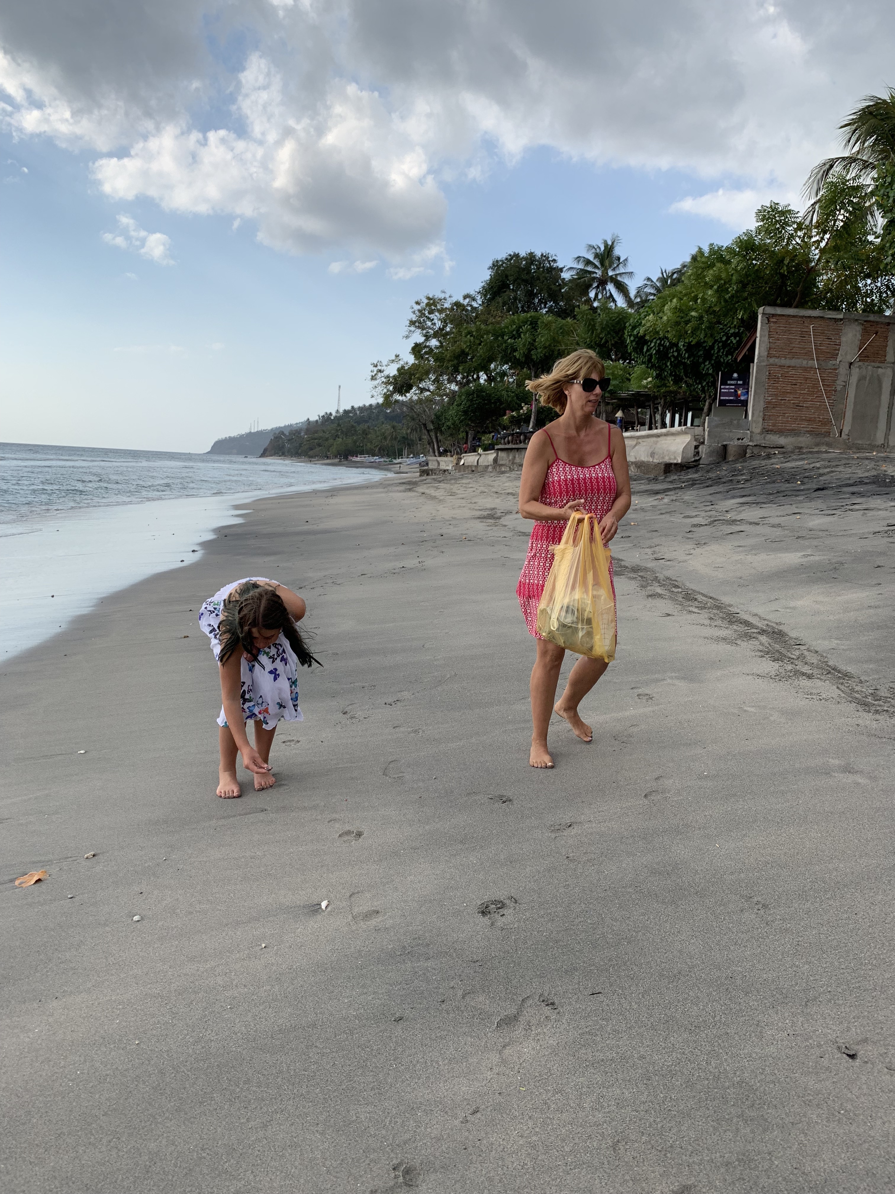 Ezért például legutóbbi Indonéziában töltött nyaralásunk alkalmával minden délután, mikor megérkezett az apály,végig sétáltunk egy hosszú partszakaszon és összeszedtük az óceán által kisodort szemetet. Előtte mutattam képeket róla,hogy hány tengeri állat halálát okozzák a vízbe került műanyagok,így még nagyobb tétje volt a munkánknak. Szemétszedés közben pedig megfigyelhettük ahogy a helyiek kampós botokkal vadásznak a pocsolyákban maradt apró állatokra,ez is jó alkalmat adott egy beszélgetésre,akár a társadalmi különbségek,akár az egészséges táplálkozás szemszögéből. Az volt a legizgalmasabb délutánunk,mikor az alacsony vízben felfedeztünk egy kékgyűrűs polipot,ami az egyik atlaszunk szerint a világ 10 legveszélyesebb állatai közé tartozik! Volt nagy ámulás és lelkesedés! 🙂