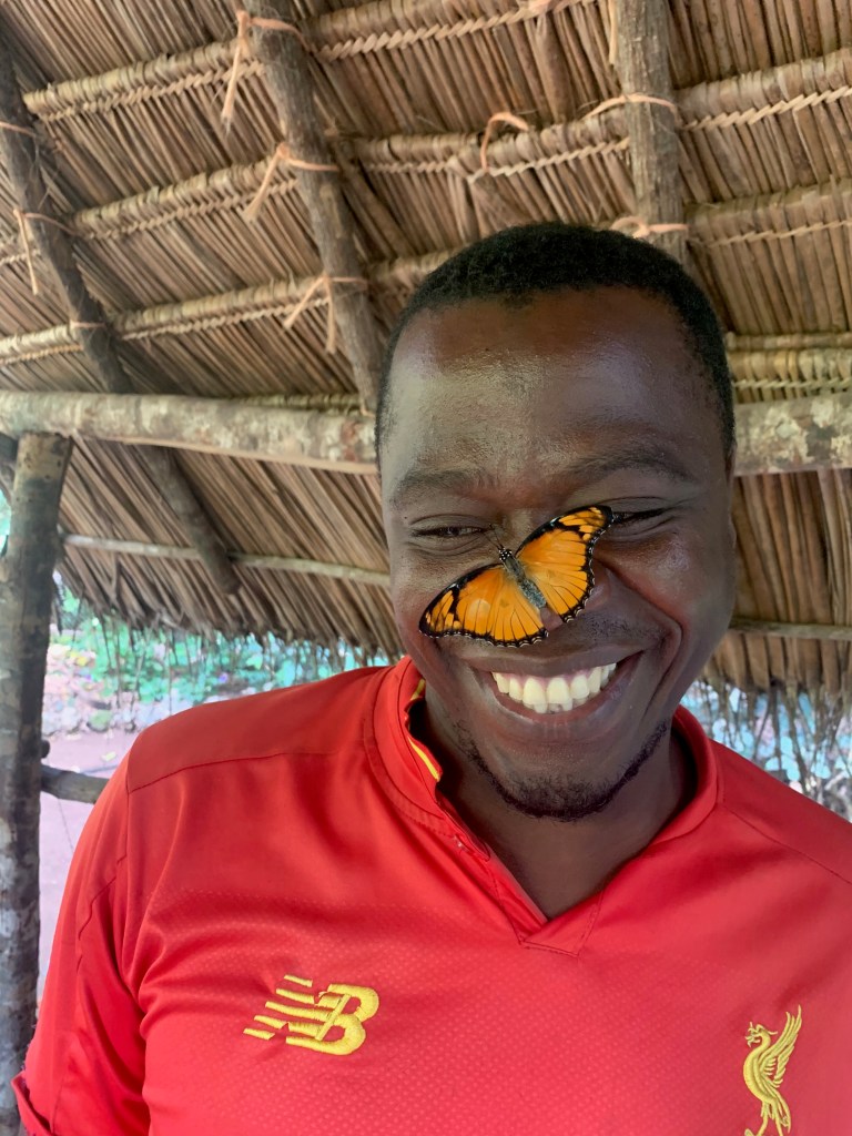 Első állomásunk egy pillangófarm volt. Csupamosoly vezetőnk,akinek szinte világított fogsora fekete arcában,megmutogatta a pillangók életciklusát. Kezünkbe foghattuk a gombostűfejnél is kisebb tojásokat,láthattuk a frissen kikelt aprócska hernyót,aki,pont mint a Telhetetlen Hernyócska meséjében,két héten keresztül csak eszik és eszik,míg jól megtermett,dagi hernyó nem válik belőle. Megnéztük a különféle bábokat és ámultunk a frissen kibújó pillangók szépségén,ahogy még nedves szárnyaikat szárítgatták,mielőtt neki indulnak földhöz nem kötött,illatozó virágok között töltött életüknek.