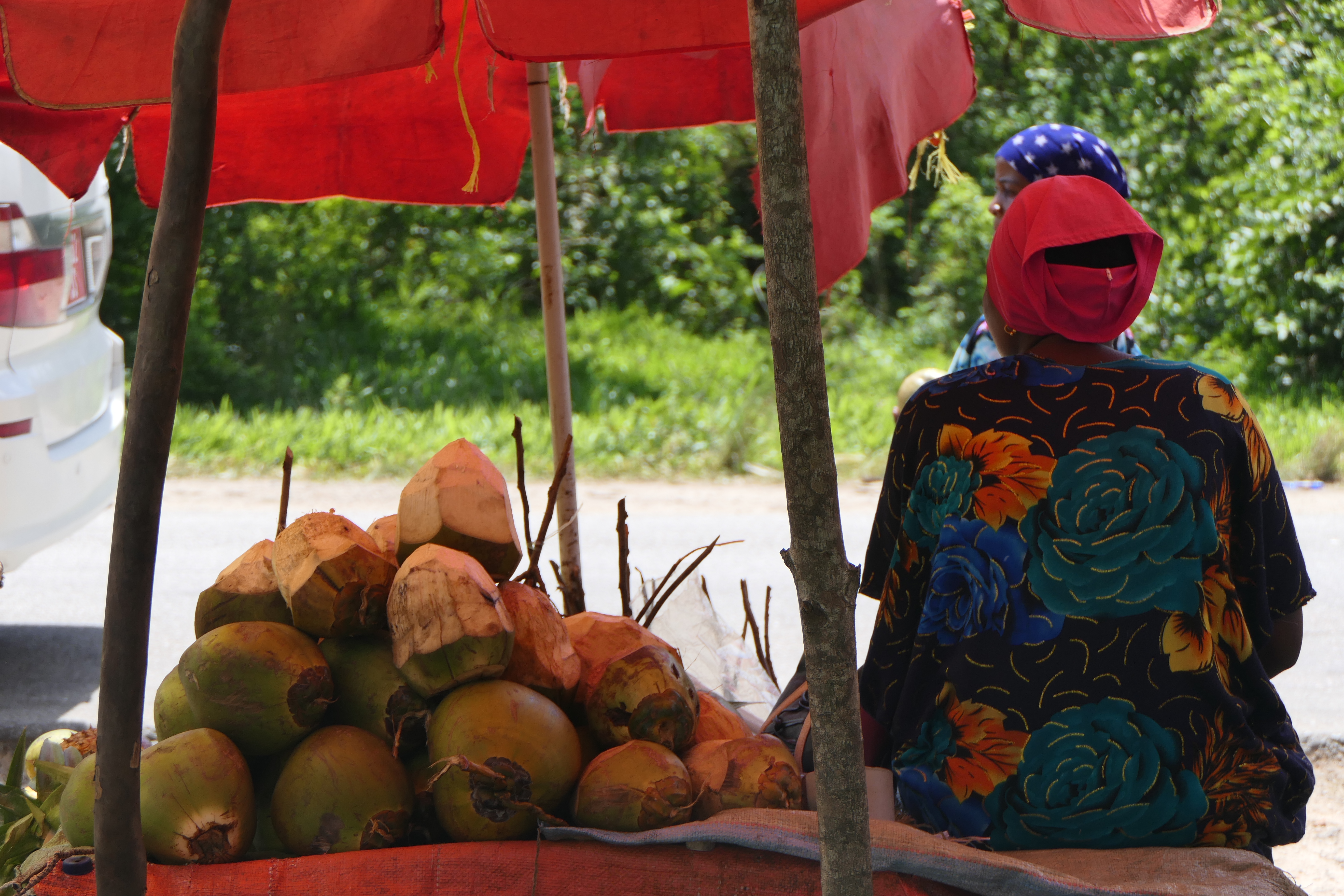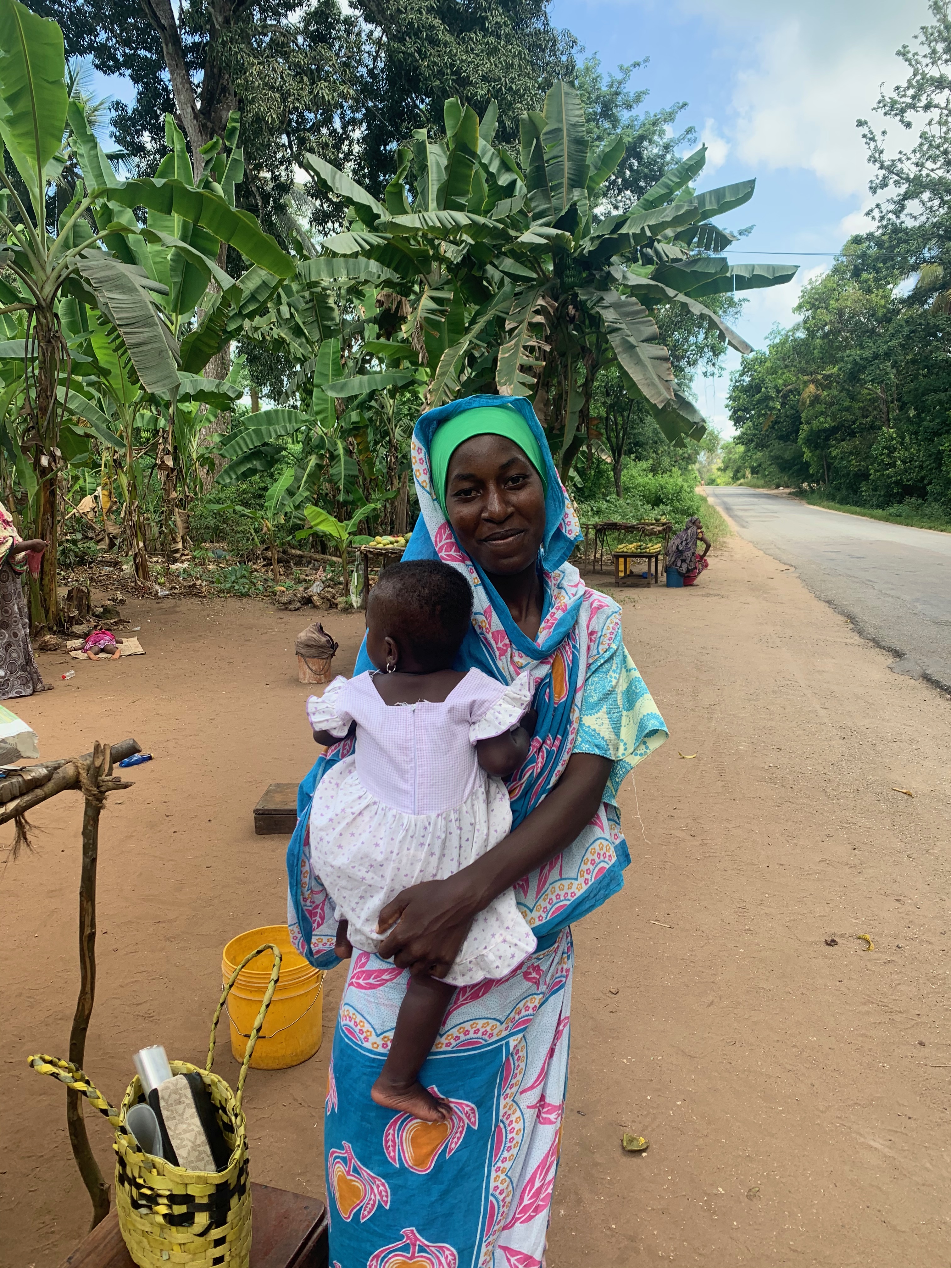 Mangó szezon van éppen,a parkoló melletti falusiak halomba pakolt sárgászöld gyümölcseiket kínálgatták.Körénk sereglettek megcsodálni fehér bőrünket és világos hajunkat,amit egy vidám csoportképen meg is örökítettünk.