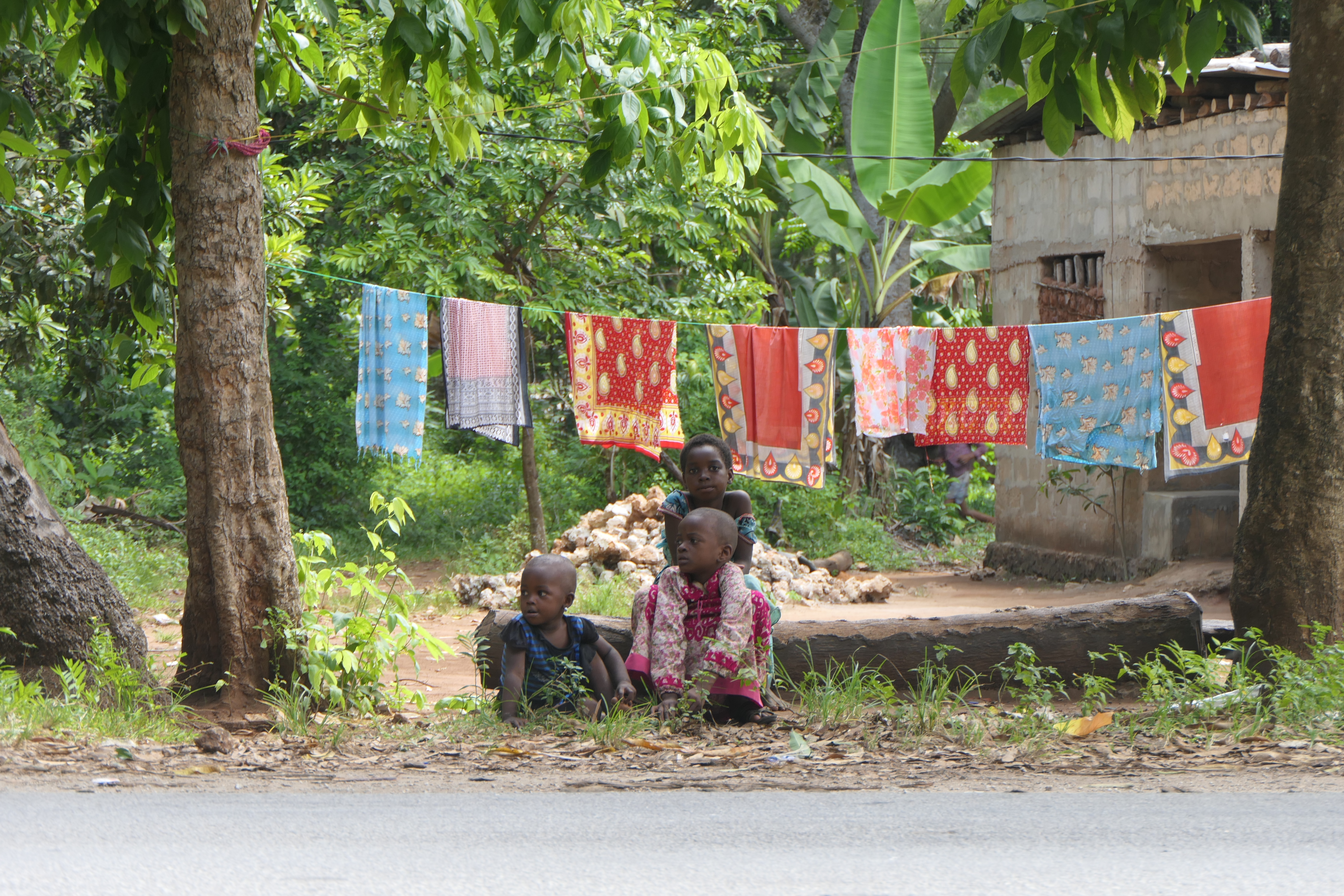 Kíváncsian figyeltük a kocsi ablakai mellett elsuhanó tájat.A tűzvirágfák lángolni látszottak a szikrázó napfényben,kunyhóik előtt szemetgyönyörködtetően élénk színű ruhákba öltözött asszonyok árulták gyümölcseiket,körülöttük tündéri fekete gyerkőcök és kapirgáló tyúkok sertepertéltek,az út mentén kecskék sétálgattak és púpos hátú tehenek legelésztek békésen. A rizsföldeken aratták a termést,az egyszerű,földszintes házak közötti szárítóköteleken ezerszínű könnyű kendők lengedeztek a szélben.