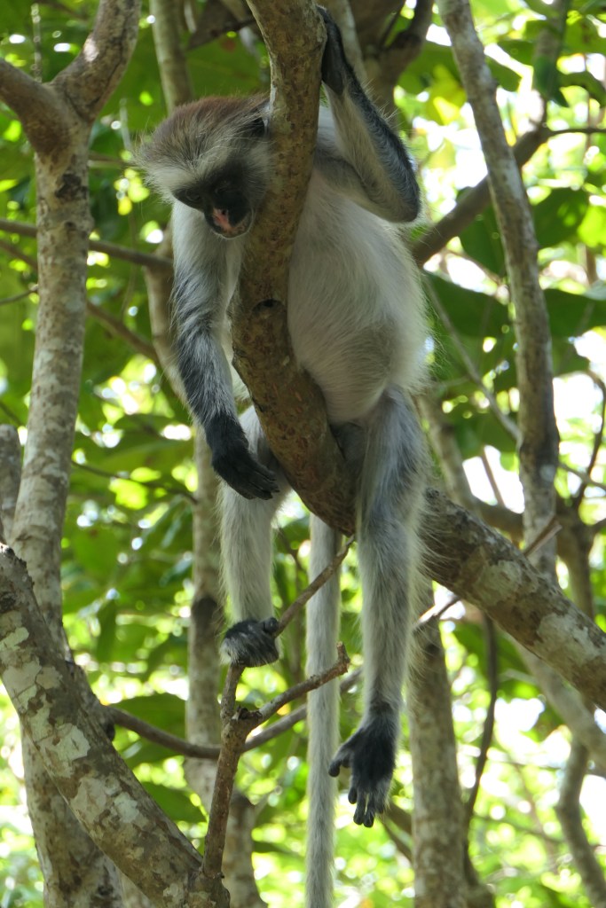 Az erdő nyújt otthont egy endemikus fajnak,a karcsú testű vörös colubus majmocskáknak. Görög eredetű nevük arra utal,hogy apró kezeikről hiányzik a roppant hasznos szembefordítható hüvelykujj,így a mászás közbeni egyensúlyukat hosszú farkuk segítségével tartják meg.A mókás frizurájú állatok egyáltalán nem félősek,kíváncsian figyeltek bennünket a fák ágairól. Vezetőnktől megtudtuk,hogy akár két hetet is kibírnak víz nélkül,ugyanis a fő táplálékukat jelentő leveleknek magas a nedvességtartalma. A rostanyagok lebontásában pedig szén fogyasztásával támogatják emésztésüket,mi is láttuk ahogy egyikük egy kihűlt tűzrakó helyről szerzett magának egy elszenesedett ágat és elégedetten rágcsálta. A rövid erdei kirándulás alatt találkoztunk dús szemöldökű,fekete bundás majmokkal is,majd vörösesbarna törzsű teakfaóriások között kanyargó ösvényeken követtük kísérőnket,aki különféle érdekességeket mesélt az őshonos növényekről és felhasználásukról. Hallhattuk a misztikus zanzibári leopárd történetét is,melyet évtizedekkel ezelőtt láttak utoljára,de az itt élők mondáiban a varázslók háziállataként szerepel,amely szellemként ijesztgeti az embereket álmukban.
