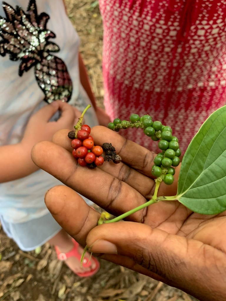 Egyikük kísérőnek ajánlkozott, hogy körbevezessen bennünket az ültetvényen, mellyen elmondása szerint a világ összes betegségére találni ellenszert. Nem lehet betelni vele, hogy mennyire vidámak, közvetlenek és viccesek az itteni emberek! Ez a fiú miután már bemutatkozásnál megnevettetett vele bennünket, ahogy akadozó nyelvvel próbálta megismételni a nevünket, egy kvízt játszott velünk, hogy hány náluk termesztett növényt ismerünk fel a terméséről vagy az illatáról. Elég jól teljesítettünk, 15-ből tíz találatunk volt 🙂