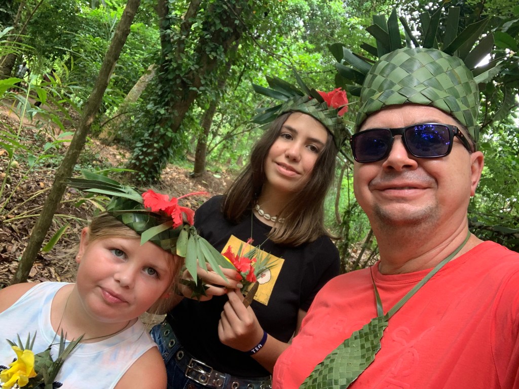 Finom volt az ital, fantasztikus a séta az eső utáni friss levegőn az illatozó, árnyékot adó növények és dalos kedvű madarak között, sokat nevettünk és sokat tanultunk kísérőnk előadásából, búcsúajándékként pálmalevelekből font, virágdíszes ékszereket kaptunk és vásároltunk néhány különlegességet is az itt készülő termékekből, többek között banános, kókuszos és vaníliás teát.
