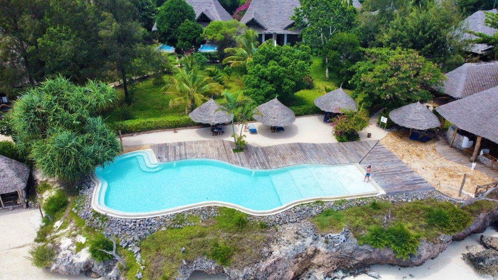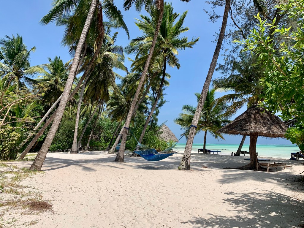 Ritkán zárunk ennyire a szívünkbe egy szállodát, mint a zanzibári Pongwe Beach hotelt. Lehet hogy közrejátszott a sok utazásmentes hónap és az itthoni korlátozások után hírtelen ránk tört szabadság mámora, de ez nem változtat azon,hogy az egyik kedvenc szállásunk lett, ahová bármikor visszatérnénk. Ez a békés, családias hotel a sziget keleti partján található, az út felöl erdő öleli körbe, a hozzá tartozó szépséges partszakasz pedig olyan, mintha privát strandja lenne az embernek. Néhány halászon és az apálykor vacsoránakvalót gyűjtögető asszonyokon kívül senki nem jár erre.