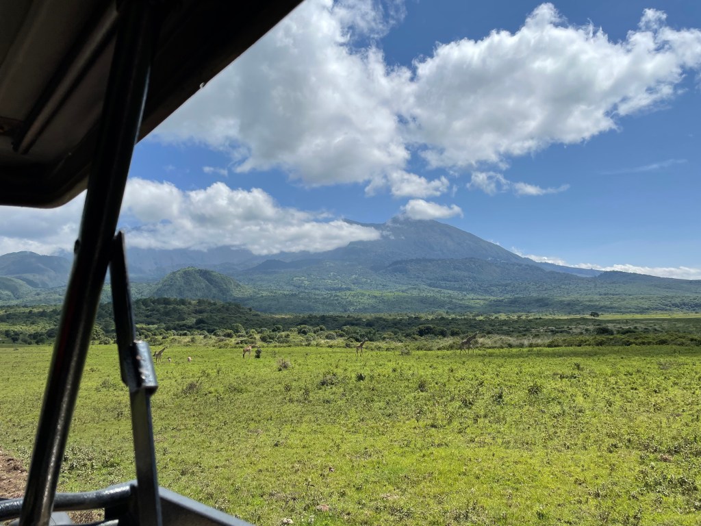 Emlékeztek arra a részre,mikor a Jurassic Park-ban először tárult fel a látogatok szeme előtt a csodálatos táj és benne a legelésző dinoszauruszok? Hasonlóan döbbenetes élmény volt, ahogy a fák közül kikanyarodva elénk tárult egy varázslatos szépségű völgy,mögötte a zöld ezernyi árnyalatában tündöklő hegyek és ameddig a szem ellát zsiráfok és zebrák csoportjai!