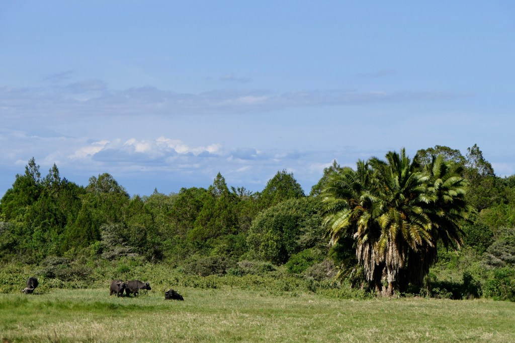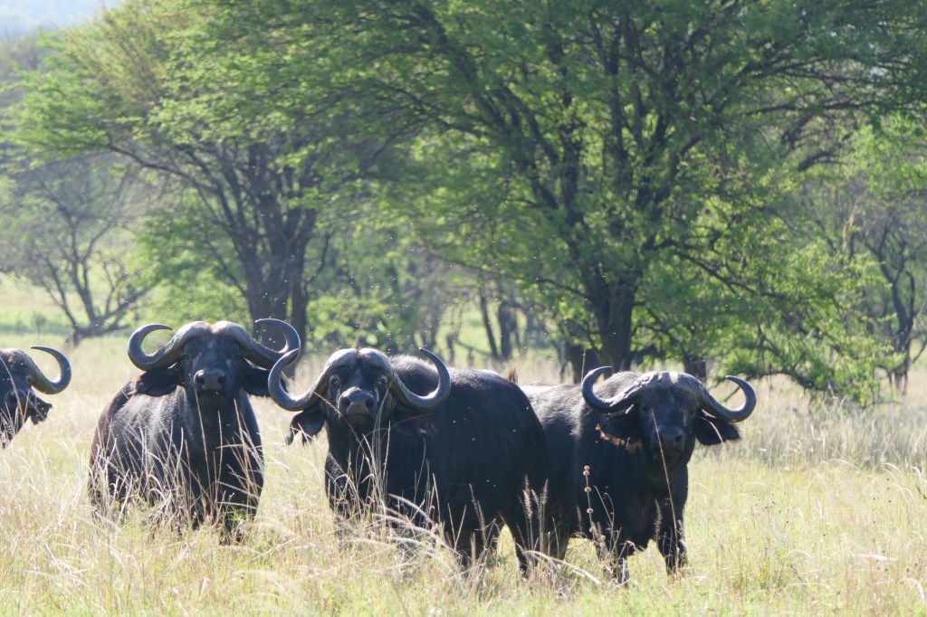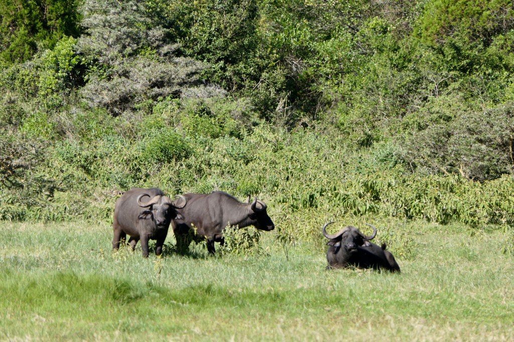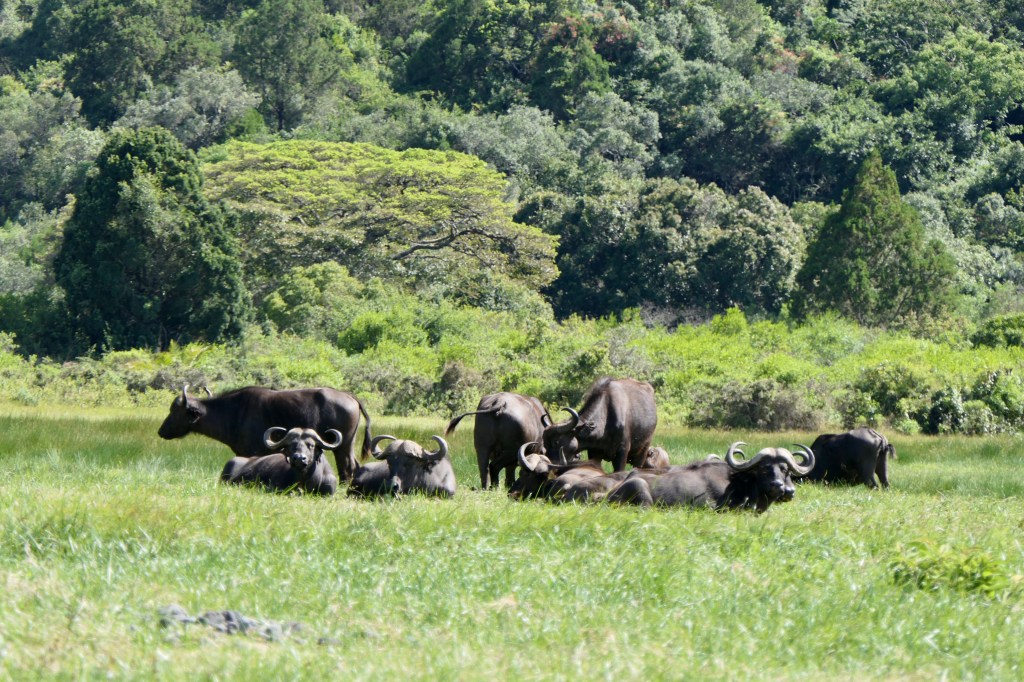 Mesebeli vidéken jártunk! Harsogó zöld mező,hűs vízű patak,bárányfelhőkkel pettezett tintakék égbolt,cserregő színes kismadarak,óriás tüskékkel védekező bokrok,a fűben heverő hatalmas testű szénfekete és csokoládébarna bivalyok,tőlünk pár méterre lombokat legelésző szégyenlős zsiráfok,lépteink zaja elöl iszkoló varacskosdisznó család,árnyas szurdok mélyén vízesés,a fények játékától más és más árnyalatot öltő hegyoldalak,forrón tűző trópusi napfény,háborítatlan természet és a felfedezők izgalma.