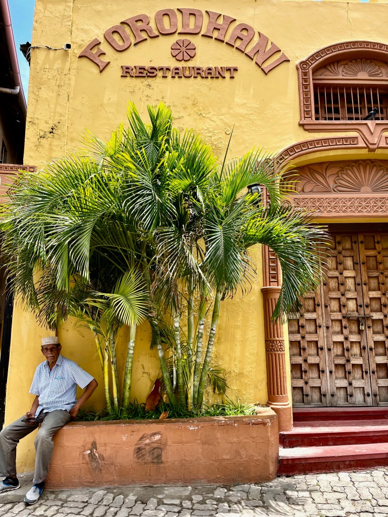 Négyen csajok és Tamás, a vezetőnk egy helyi guide kiséretében megnéztük Mombasa óvárosát. Izzasztó hőségben sétáltunk a szűk utcácskákon, megcsodáltuk a régiségboltok kincseit, hallgattuk az öreg mecsetből kiáradó énekszót, bekukucskáltunk a faragott kapuk mögötti, ódon illatú lépcsőházakba, megkóstoltuk a helyi ételeket egy tengerre néző étterem teraszán.