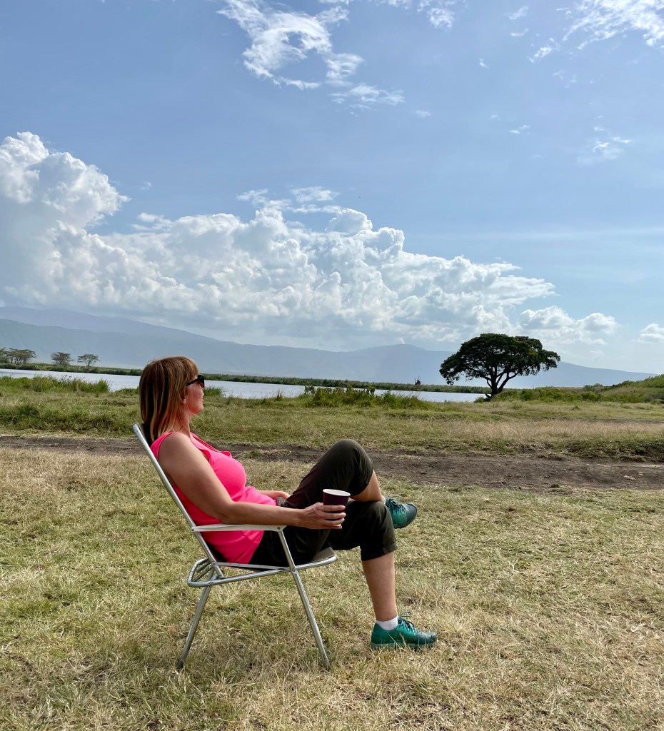 Megtudtuk hogy előző nap nyitottak és mi voltunk az első vendégeik! Az afrikai vadon közepén kényelmesen hátradőlni egy székben, arcodat a símogató napsütés felé fordítani és inni egy isteni kávét, miközben a hátad mögött zebrák vonulnak át és előtted a tóban szuszogva szörcsögnek a vizilovak, ez az igazi rock and roll!