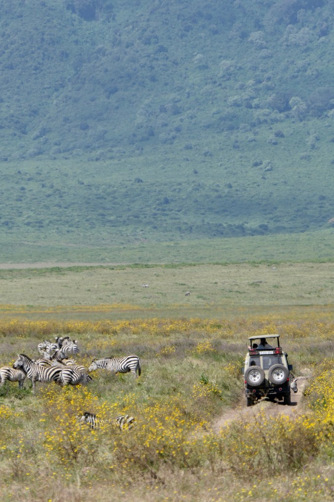 Egyetlen út vezet le a kráterbe, ahol délelőtt csak lefelé, délután pedig felfelé haladhatnak a szafarira érkezők. Minden sofőr rácsatlakozik a központi rádióra, így egész úton hallhattuk az egymás közötti beszélgetéseket, mint réges-régen a taxikban 🙂 Hihetetlenül izgalmas egy ilyen szafarira elindulni! Lehet hogy látunk elefántokat, vagy oroszlánokat, ahogy kergetik a zsákmányukat? Bármi megtörténhet!