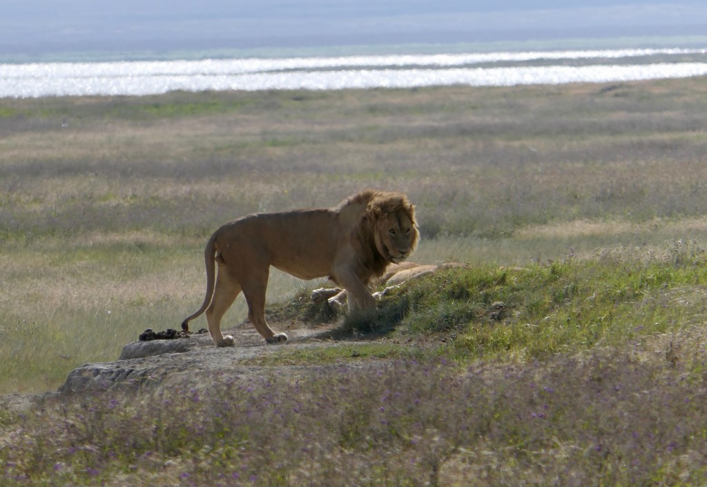 Tovább indulva felfedeztünk egy pihenő fiatal hím oroszlánt. Ahogy felállt nyújtózkodni kiderült, hogy nőstények is heverésznek mellette a naptól felforrósodott sziklákon. Hidegrázós élmény természetes környezetben látni az állatok királyát! A sörény nem csak dísz rajtuk, védi a nyakukat harc közben és félelmetesebbnek is látszanak tőle. Az oroszláncsajoknak a hosszú, dús és sötét sörény az esetük 🙂