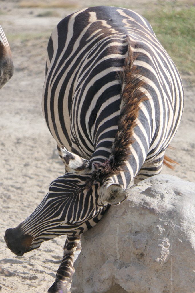 Ahogy mélyültek az árnyak, az állatok csapatai lassan lehúzódtak a tópartra. Elragadtatottan figyeltük, hogyan álltak sorban a zebrák egy simára koptatott vakarókőnél és dörgölték hozzá viszkető nyakukat vagy oldalukat! Alig várták már, hogy végezzen az előttük levő! És micsoda kéjes pofát vágtak vakarózás közben!