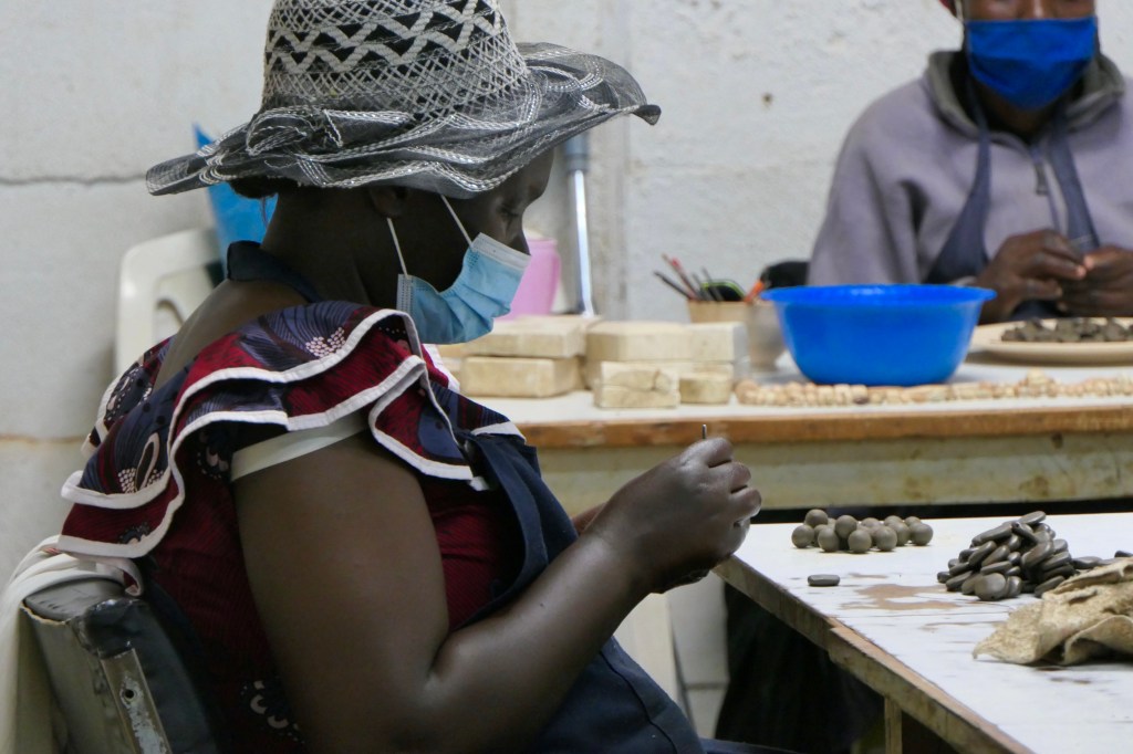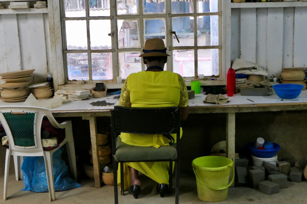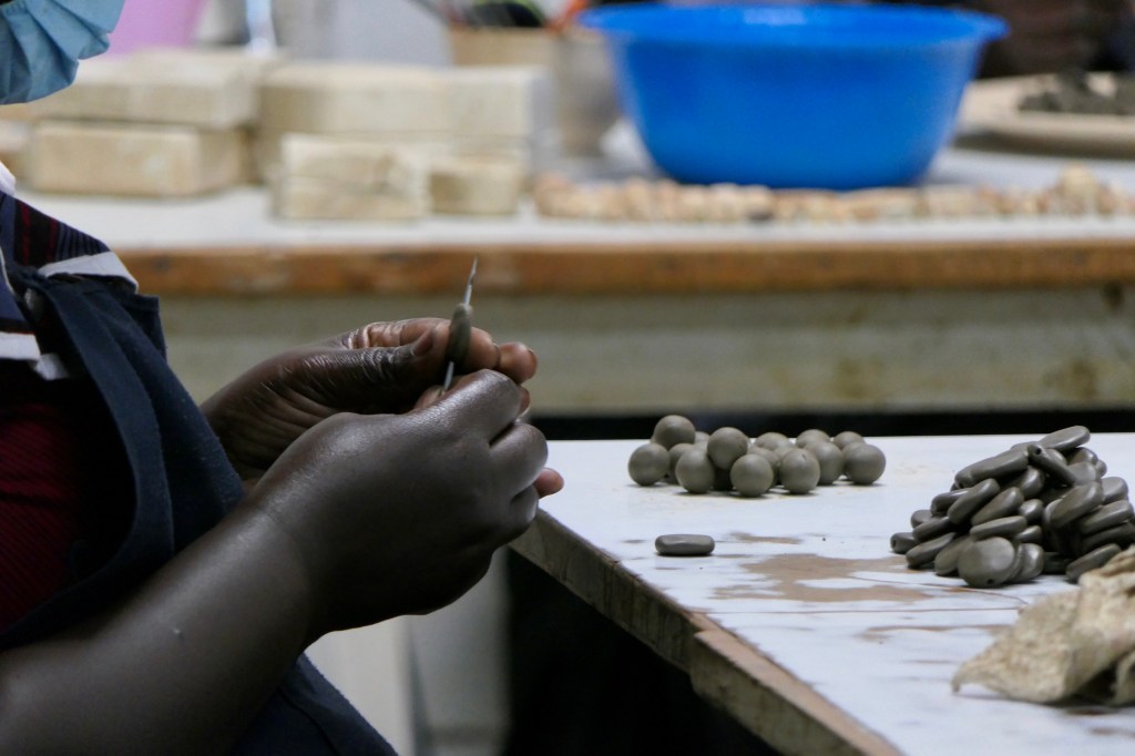 Megmutatta hogyan dolgozzák fel a közeli folyó partjáról származó agyagot és hogyan varázsolnak belőle különböző izgalmas tárgyakat. Még az apró gyöngyöket is egyenként, kézzel készítik ezek a türelmes asszonyok!