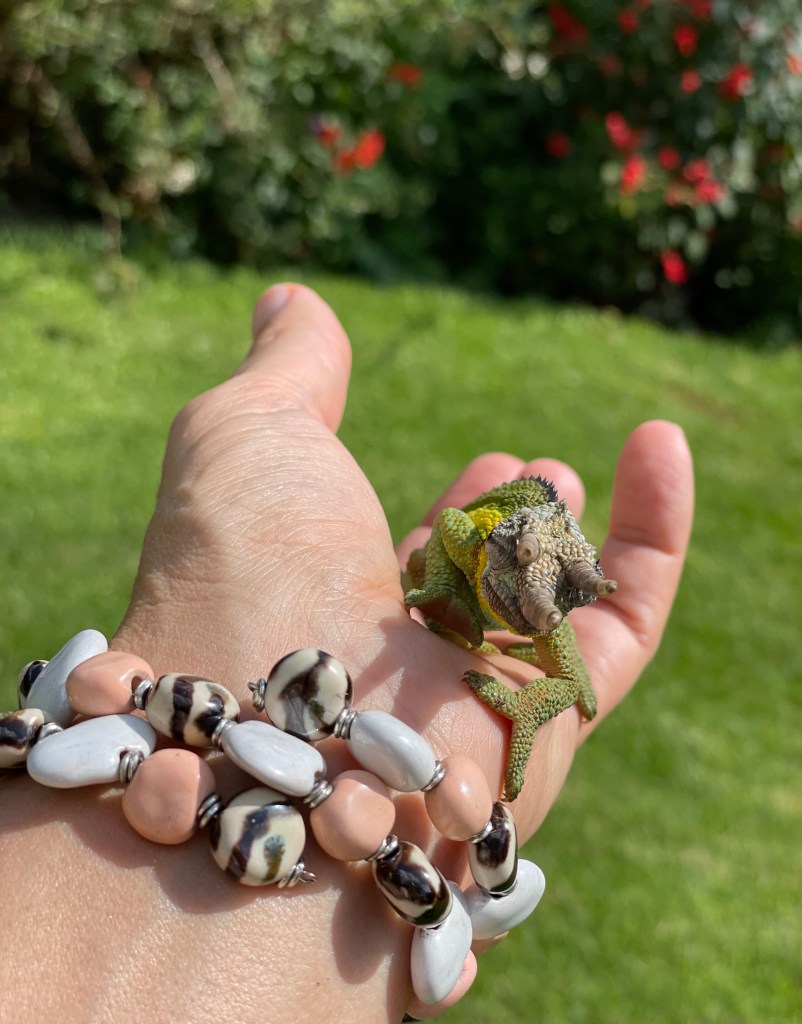 Én pedig direkt olyan karkötőt választottam, ami pompásan illik egy kaméleonhoz 🙂