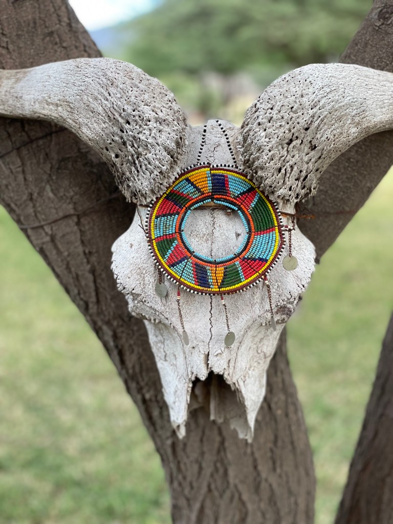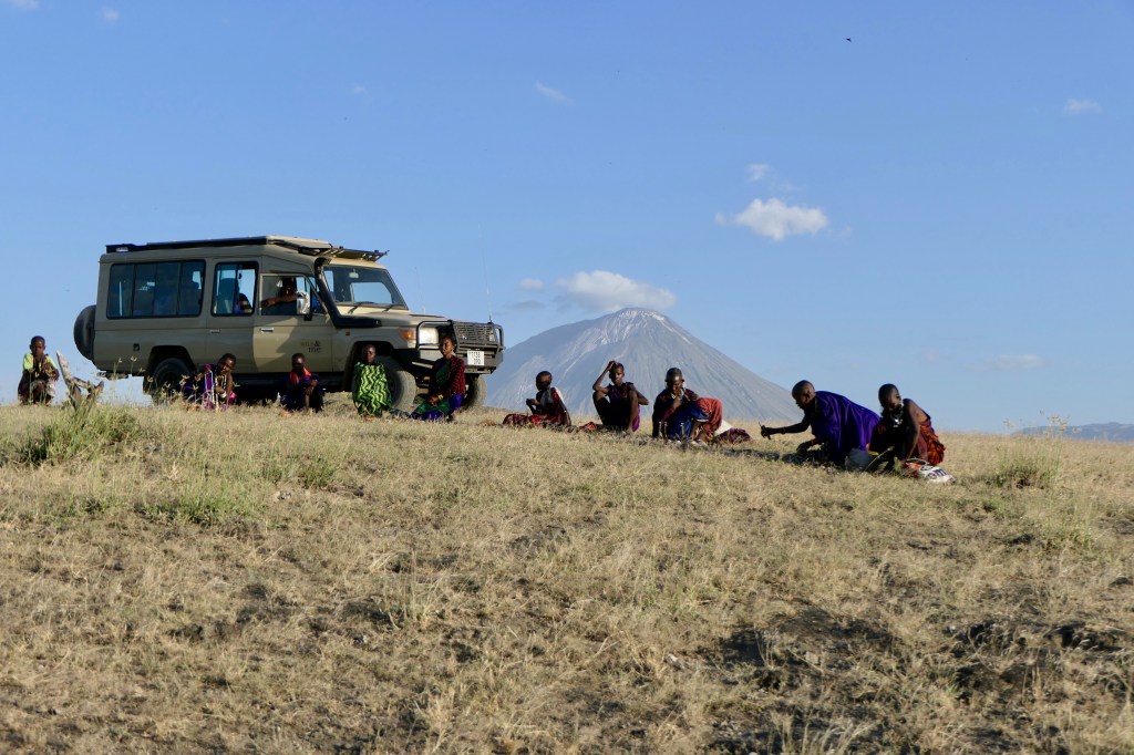 Amíg mi sétáltunk, addig a kocsink köré, a fűbe telepedett egy csapat asszony. Errefelé bárhol megállunk, nyomban megjelenik néhány lány egy nagy táska eladásra szánt karkötővel. Ez egy szegény vidék, az itt élő maszáj családokat a Szerengeti környékén lévő, dús legelőkről költöztette ide a tanzán kormány. A karkötőárus asszonyoknak valószínűleg az az egyetlen bevételi forrása, hogy a nagy ritkán erre járó turistáknak eladnak néhány ékszert. Szívfájdító látvány, ahogy alázatosan ülnek a kiterített kendőre pakolt karkötők mellett és reménykedve várják, hogy vegyünk valamit. Így utólag rettentően bánom, hogy nem vettem mindegyiküktől egy-két apróságot 😦