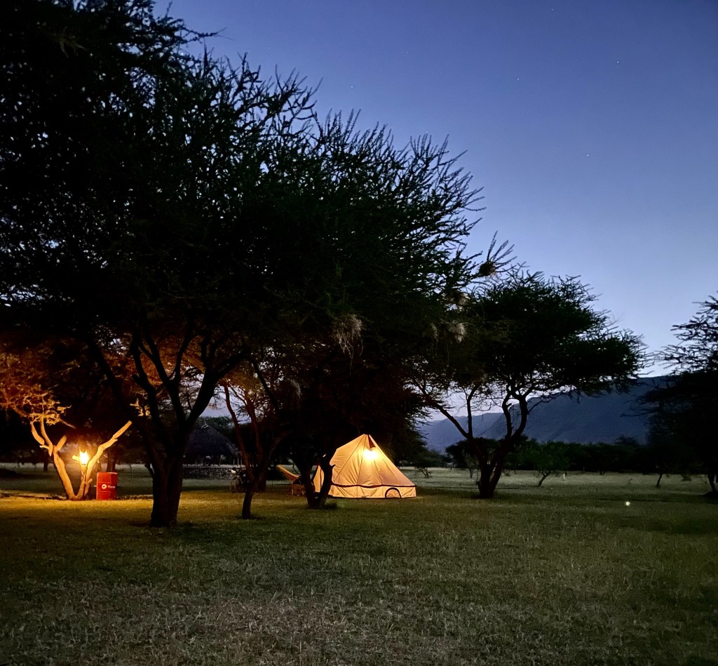 Végre megérkeztünk az Ol Doinyo Lengai lábánál lévő szállásunkhoz. Valódi kis zöld oázis ez a hotel, melynek a kertjében kempingezni is lehet. Teraszunkról fenséges látványt nyújt a a tájat uraló hegy, amit csapatunk férfi tagjai az éjjel meg fognak mászni. Az Ol Doinyo Lengai “az isten hegye” maszáj nyelven. Ez a több mint háromezer méter magas aktív vulkán utoljára pár évvel ezelőtt tört ki, szomorú szürke hamuval borítva be vastagon az egész vidéket.