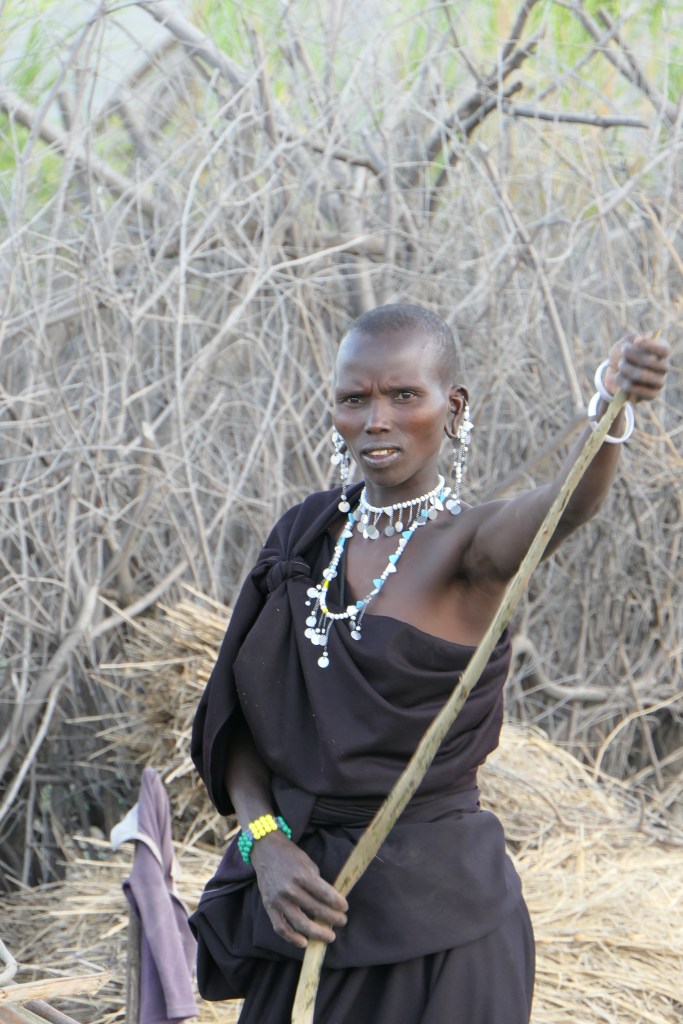 Láthatjátok, hogy valamennyien rövid hajat viselnek. Kizárólag a fiatal harcosoknak lehet hosszú haja, de ők nem a faluban, vagyis a bomában élnek, hanem kint a bozótban, az állataikkal. A férfiak mindig hordanak övet, amire késüket erősítik. Elmaradhatatlanul hozzájuk tartozik a dárdájuk és egy bunkósbot, amit szintén az övükbe tűzve hordanak. A legendák még mesélnek arról, mikor a férfivá avatás alkalmából meg kellett ölniük egy oroszlánt, de manapság oroszlánra csak a pénzes fehérek vadászhatnak, akik nem dárdával, hanem puskával gyilkolják a vadakat, a terepjáró kényelmes üléséről.