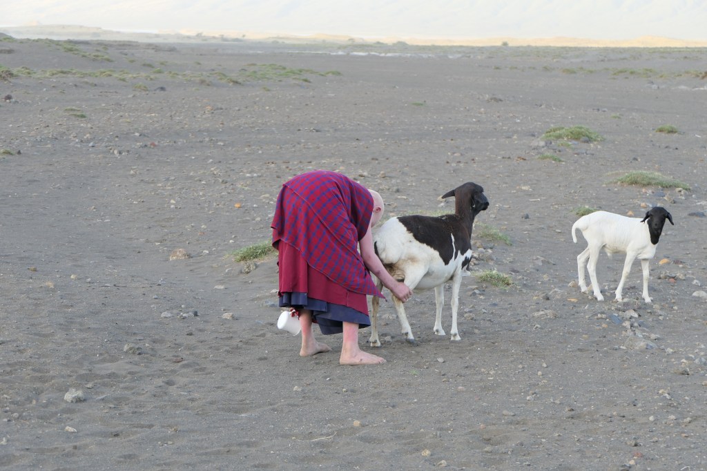 A maszájok legalapvetőbb tápláléka a tej. A kislányok rögtön neki is fogtak a fejésnek. A tejet isszák simán, az állatok vérével keverve vagy a teájukba töltve. Ez a fő fehérje forrásuk, húst csak ünnepi alkalmakkor esznek. Csak a saját állataik húsát eszik, nem vadásznak, csirkét és halt sem fogyasztanak. Egyébként felfoghatatlan, hogy ezen a tájon hogy találnak az állatok elegendő legelnivalót. Csak por és hamu, bármerre nézünk!