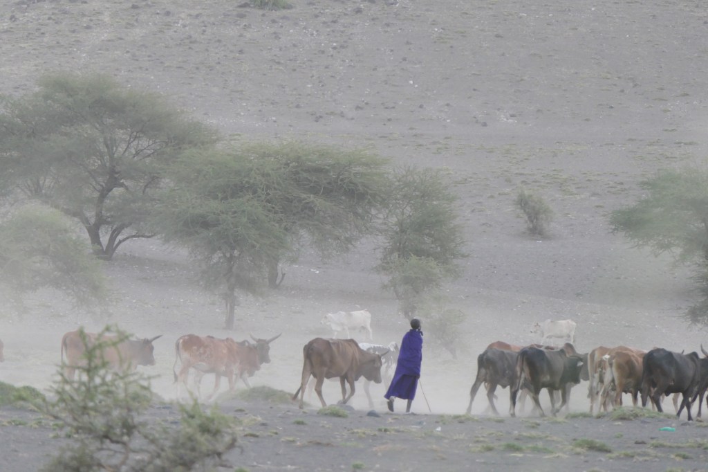 Döbbenetes volt a hely, ahol jártunk. Hogy lehet itt élni?! Pedig ez a vulkáni hamuval borított, poros vidék láthatóan lakott terület. A gyorsan leszálló szürkületben elindultunk meglátogatni egy maszáj települést, amely a helyi vezetőnknek, feleségeinek és az ő gyermekeiknek az otthona. Meg persze az állataiknak. Mert a maszájoknak a legnagyobb kincsük a nyájuk. Azt mondják, a tehenek fontosabbak a felségnél. A maszájok úgy tartják, hogy istenük, Ngai, a világ összes tehenét népüknek adta. Ezért feljogosítva érzik magukat, hogy rendszeresen lopkodják a szomszédos törzsek állatait. Ezen a vidéken, az Ol Doignyo Lengai vulkánja tövében nem is értem, hogy él meg meg a szarvasmarha. Kecskéket és birkákat is látunk, hatalmas nyájaik lassan vonulnak a ritkás fák alatt, mellettük színes ruhás pásztoraik, lábuk nyomán száll a könnyű por, festményre kívánkozó látvány!