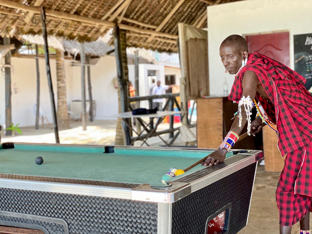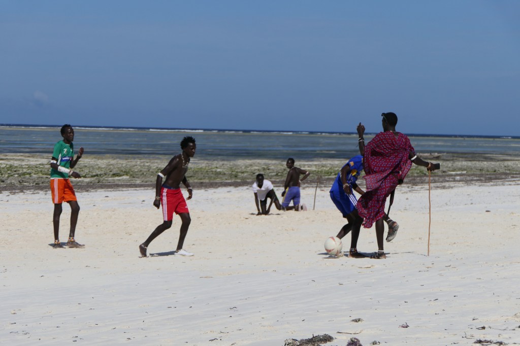 Azért persze a maszájok feltalálják magukat az óceán partján is. Többségük egyáltalán nem járt iskolába és csak törzsük nyelvét, a maa-t beszélik, de gyorsan elsajátítják a partvidéken használatos szuahélit és az angolt is. És beletanulnak a helyi életbe. Telefont vesznek maguknak. Esténként focimezre cserélik vörös kendőiket és játszanak egy meccset a parton.