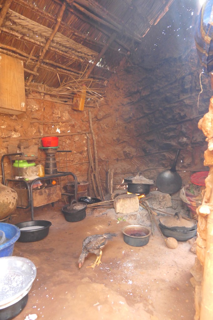 Egy földművelők lakta faluban is jártunk. Földjeiken édesburgonyát, kukoricát és mangót termesztenek. A házak jellemzően egy szobából állnak, ahol valamennyien együtt, a földön alszanak. Áram nincs, a vizet egy 19. század végén ásott kútból húzzák fel. A házak mögötti udvarokon áll a nyitott konyha, ahol szabad tűzön főznek és egy üres, kövezett helyiség a mosásra és a mosakodásra. Ezen az árnyékos udvaron ücsörög a család apraja-nagyja. Ahova mi benéztünk, ott a nagyi kavargatta az ebédet, a sógornők egymás haját fonták, az unokahúgok reszelték a kókuszt, aprították a fokhagymát, a gyerekek tébláboltak, az egyik sarokban egy magatehetetlen idős rokon feküdt. Valamennyien kifejezéstelen arccal néztek bennünket.