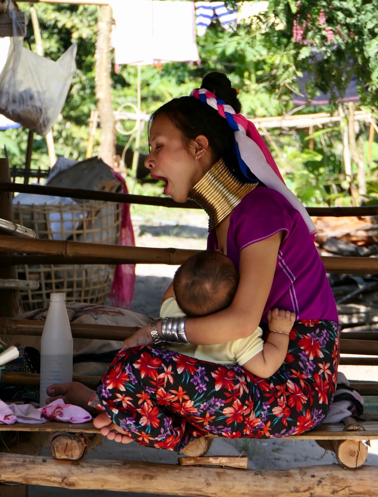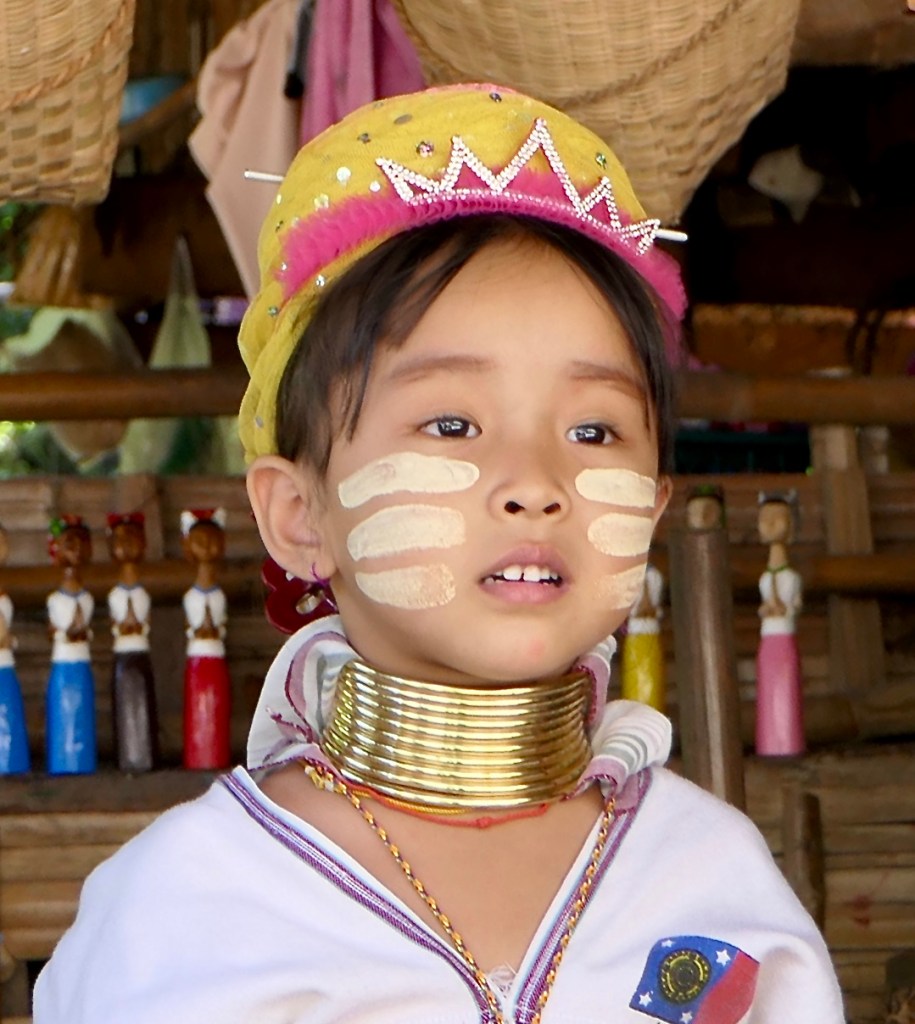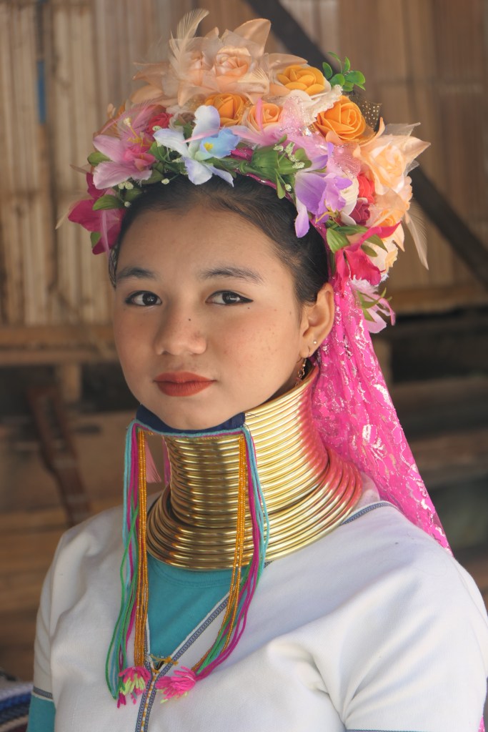 Többféle elmélet létezik, hogy miért alakult ki ez a bizarr szokás. Az egyik szerint a fémmel borított nyak védelmet nyújt a környéken gyakori tigrisek támadása elől. Azt is mondják, hogy így a nők hasonlatossá válnak az általuk szentként tisztelt sárkányokhoz. És itt is felmerült az az elgondolást, hogy így elcsúfítva megvédik őket, hogy a rabszolgakereskedők vagy a szomszédos törzsek férfiai elrabolják ezeket a bájos arcú lányokat.