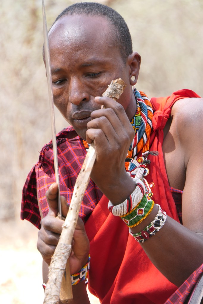 A maszáj és szamburu népcsoport ünnepek és szertartások alkalmával okker festést használ. Ezt vörös színű földből, tehénzsírból és a szent hegyükből származó gyógynövényekből készítik. A különböző avatási ceremóniák alkalmával ezzel kenik be a frissen borotvált koponyát, a fiatal harcosok különleges mintákat pingálnak vele magukra és a lányok a nyakukra kenik, hogy még szebbek legyenek 🙂