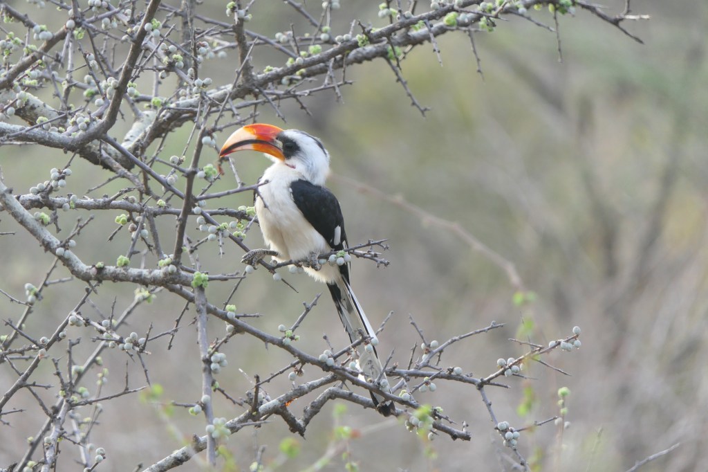 Hamarosan társaságom is akadt. Egy bogyókat eszegető szarvascsőrű madár és egy álmosan mosakodó földimókus személyében. Később egy fényseregély is megjelent. Egyikük sem zavartatta magát egy pillanatig sem miattam. Ez a föld a madarak, szurikáták, a fehérpofájú szemtelen majmok és az ijedős dik-dik-ek területe, én csak betolakodó voltam. Elbővölő látvány volt, ahogy az állatok nekifogtak napi ténykedésüknek 🙂