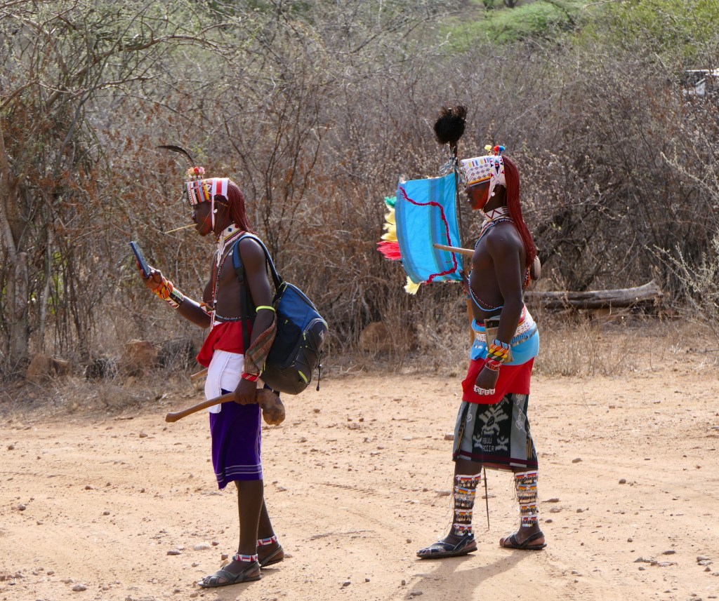 Kísérőink törzsük harcosai voltak. Felékszerezett és felfegyverzett fiatal fiúk. Az ő feladuk megvédeni a közösséget és a jószágaikat a ragadozók vagy a szomszédos népek támadásaitól. Ezek az erejük teljében levő, erős és bátor fiúk igazán komolyan veszik a feladatukat. Mellesleg úgy néztek ki meztelen felsőtestükkel, színes, szoknyaként viselt kendőikben, bunkósbotjaikkal és hatalmas tőrükkel az oldalukon, mintha valami fantasy-film forgatására öltöztek volna be. De ezekről a srácokról már írtam nektek itt:
