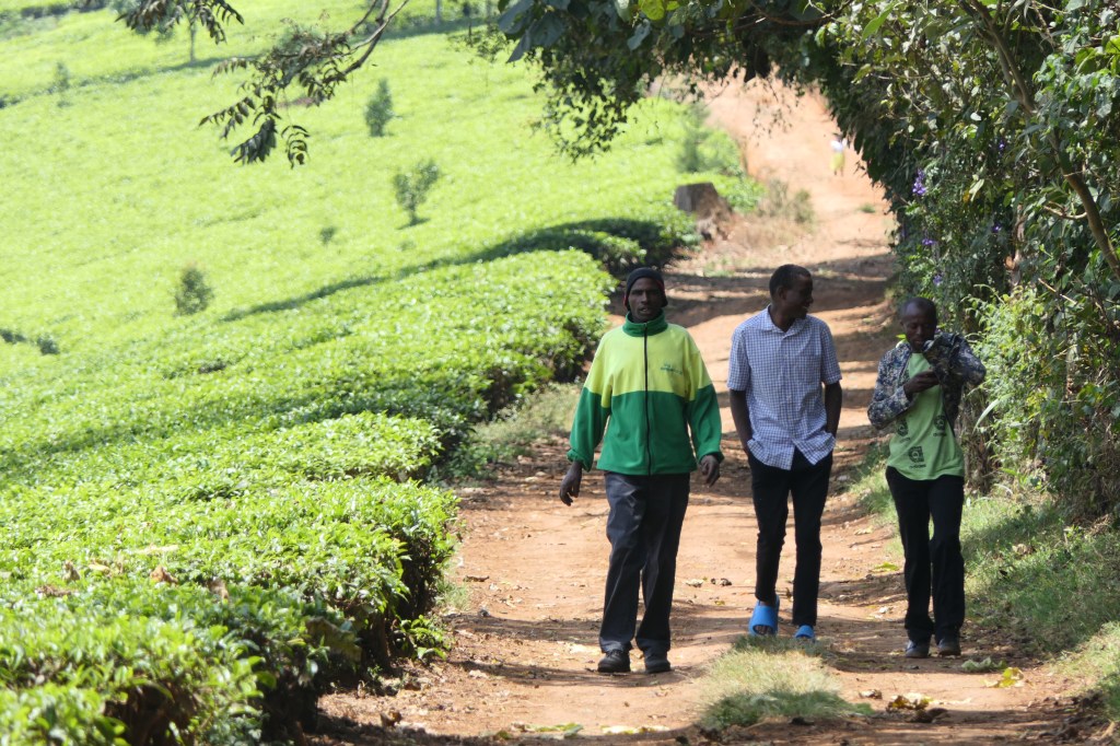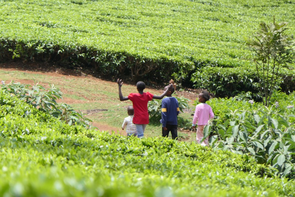 Itt részletes beszámolót kaptunk arról, hogyan szedik le az egész évben zöld cserjékről egyenként, kézzel a friss leveleket a munkások, egy tíz kilós kosárral a hátukon. Mesélt nekünk a metszésről, a teafajták közötti különbségekről, a különleges purple teáról, amely kizárólag Kenyában terem és lilás színű levelei vannak. Annyira halkan és nehezen érthetően beszélt, hogy inkább csináltam néhány fotót és gyönyörködtem a ragyogóan kék égben és a bárányfelhőkben.