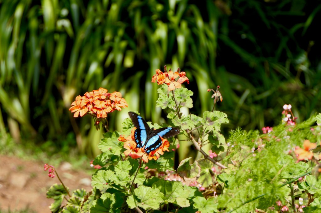 Egy barna tacskó farkcsóválva köszönt minket és mi ámulva nézzük a gondozott pázsitot, az Európából származó virágokkal teleültetett kertet és a rengeteg színes madarat, melyek az etetők körül gyülekeznek. Mesébe illő hely, meg kell hagyni!