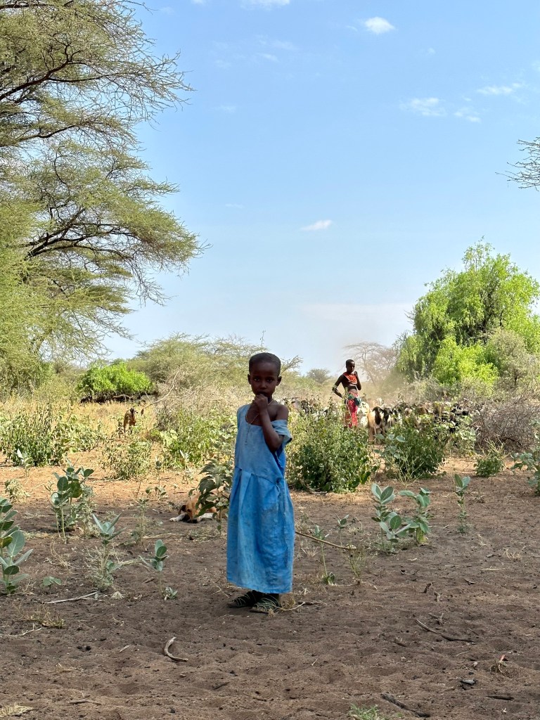 Rémesen rossz úton zötykölődünk a ritkás bozótosban. A tövises növényzet mélyén néhol karóvázas kunyhókat látunk, másutt kecskenyájakat terelő gyerekeket. Ez a vidék távol esik a civilizációtól, aki itt nő fel, rendszerint nem jut el az iskolába, minden dolgos kézre szükség van a ház körül. Ámulatba ejtő világvégi tájon járunk, a rozsdavörös földből gömbölyű vulkanikus sziklák emelkednek, az akáciák ezernyi zöld árnyalatban pompáznak, a forró szél néha édes, máskor fűszeres illatot sodor felénk. És döglesztő meleg van.